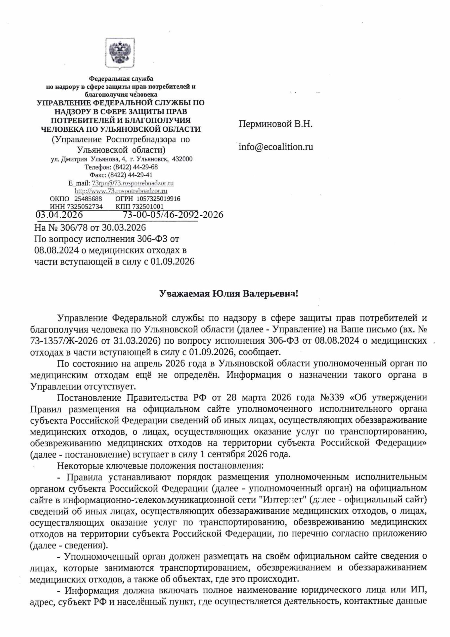 Согласно закону о медотходах 306ФЗ, каждый регион должен назначить у себя Уполномоченное ведомство, которое будет впредь курировать работу с медотходами, ныне «бесхозную». Предполагается что именно это ведомство будет размещать на своем сайте информацию, согласно только что принятому Постановлению Правительства №339 , об операторах по медотходам, которые работабт в данном регионе.